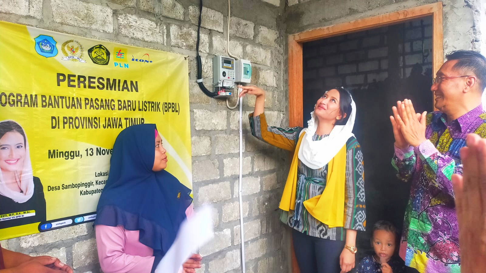 Lamongan,Jurnal9.tv – Anggota Komisi VII DPR RI, Dyah Roro Esti bersama Kementerian Energi dan Sumber Daya Mineral (ESDM) bersama PLN menyalurkan program Bantuan Pasang Baru Listrik (BPBL) bagi keluarga tak mampu. Proram ini dalam rangka meningkatkan taraf hidup dan percepatan pemerataan listrik.