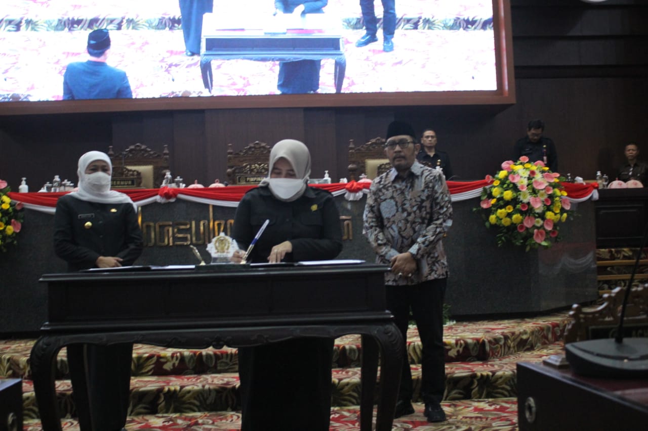 Surabaya, Jurnal9.tv – DPRD Jawa Timur mengesahkan Rancangan Peraturan Daerah Tenaga Keperawatan menjadi Peraturan Daerah (Perda) Jawa Timur. Sidang Paripurna yang dipimpin oleh Wakil Ketua DPRD Jawa Timur Anik Maslachah dan dihadiri langsung Gubernur Jawa Timur Khofifah Indar Parawansa tersebut mengambil keputusan setelah mendengarkan pendapat akhir dari fraksi-fraksi yang seluruhnya menyetujui pengesahan Perda Tenaga Keperawatan.