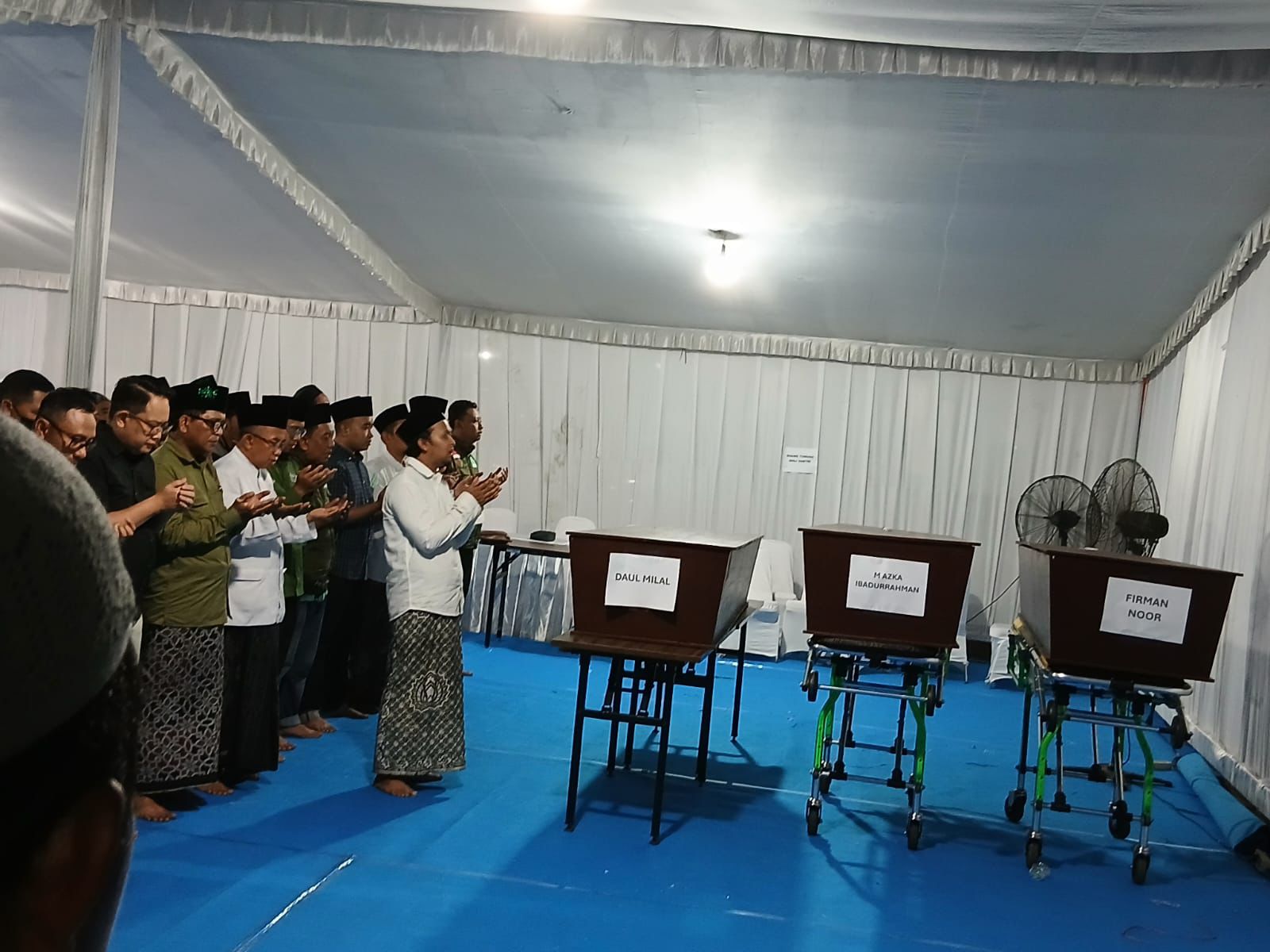 Pada Sabtu (4/10) malam, pelaksanaan shalat jenazah di Rumah Sakit (RS) Bhayangkara Surabaya untuk tiga santri asal Surabaya yang sudah teridentifikasi pun dipimpin langsung oleh Ketua Pengurus Cabang (PC) Rabithah Ma’ahid Islamiyah Nahdlatul Ulama (RMINU) Kota Surabaya, Gus M Ghozi Ubaidillah bin KH Masduqi Abdul Ghoni.