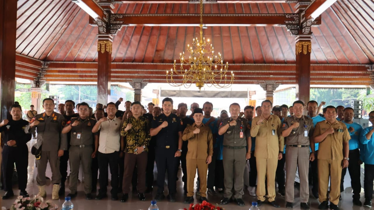 Mojokerto, jurnal9.tv -Bupati Mojokerto Mohammad Al Barra atau Gus Barra bersama kepala Dinas Sosial, Try Rahardjo, kasatpol PP Taufiqurrohman berpose besama, udai pelaksanaan sosialisasi