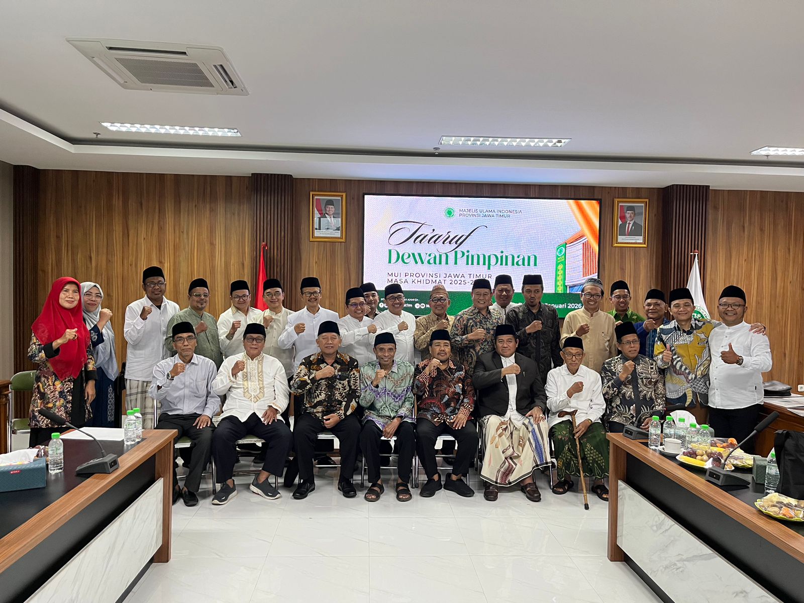 Surabaya, jurnal9.tv -Majelis Ulama Indonesia (MUI) Provinsi Jawa Timur menggelar kegiatan ta’aruf Dewan Pimpinan pada Rabu (28/01/2026) bertempat di Kantor MUI Jawa Timur. Kegiatan ini menjadi momentum awal untuk menyamakan visi, memperkuat sinergi, serta meneguhkan komitmen pengurus dalam menjalankan peran MUI sebagai khodimul ummah dan shadiqul hukumah.