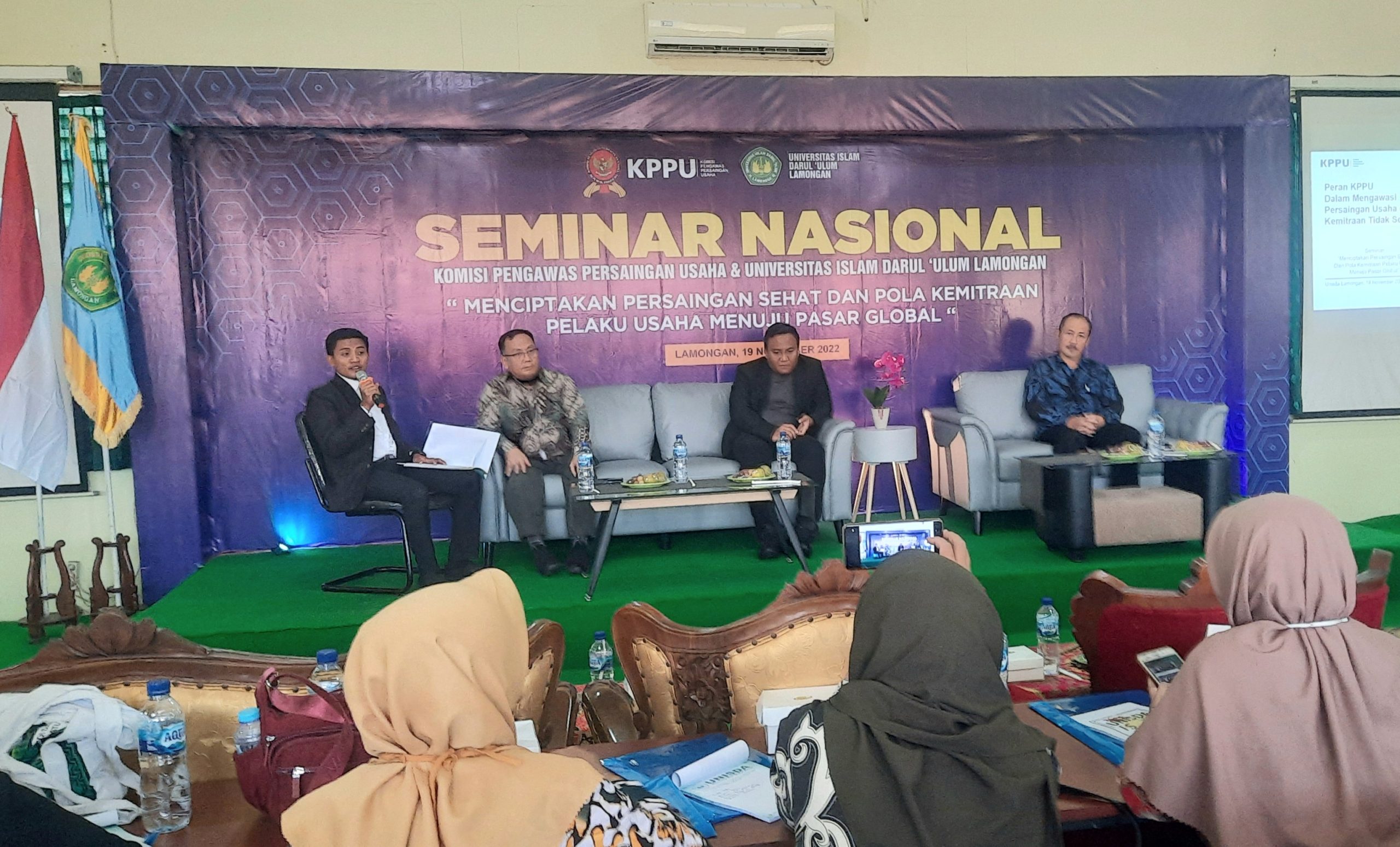Lamongan,Jurnal9.tv- Ketua Komisi Pengawas Persaingan Usaha (KPPU) RI, Dr. H. M. Afif Hasbullah, S.H, M.Hum menyebut semua lapisan masyarakat memiliki kesempatan dan hak yang sama dalam berbisnis pada playing field yang seimbang. Pernyataan tersebut disampaikan Ketua KPPU RI dalam kegiatan seminar bertajuk ‘Menciptakan Persaingan Sehat dan Pola Kemitraan Pelaku Usaha Menuju Pasar Global’, di Aula Rektorat, Lantai 3 Universitas Darul Ulum (Unisda) Lamongan.
