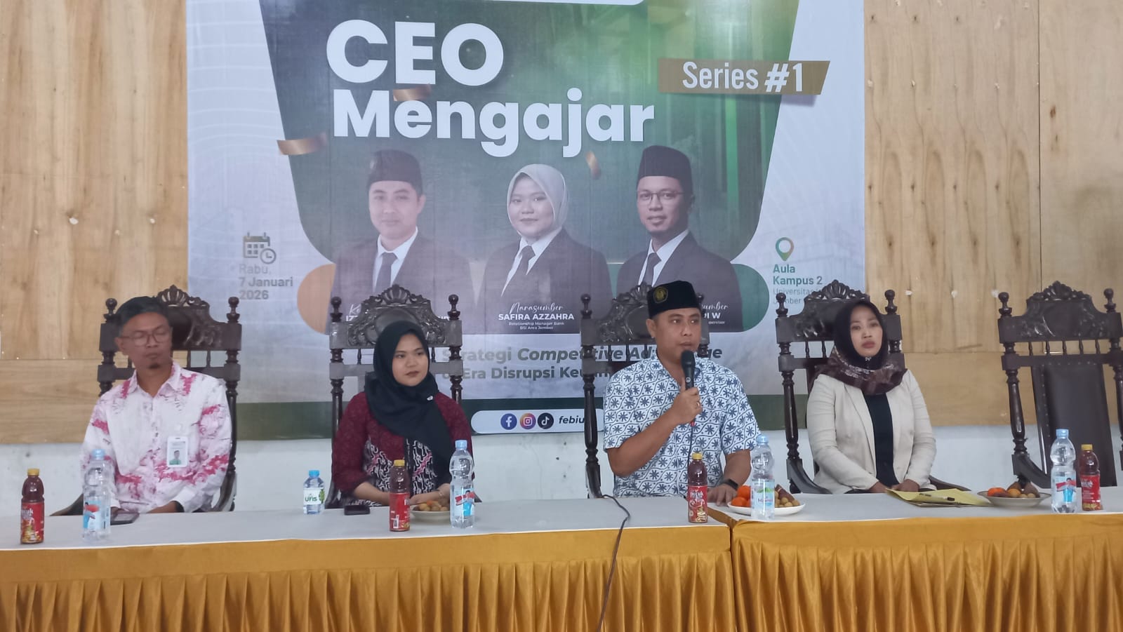 Jember, jurnal9.tv -Fakultas Ekonomi dan Bisnis Islam (FEBI) Universitas Islam Jember (UIJ) sukses menyelenggarakan kegiatan edukatif bertajuk “CEO Mengajar Series #1”. Acara yang berlangsung pada Rabu, 7 Januari 2026 ini merupakan hasil kolaborasi strategis antara pihak universitas dengan Bank Syariah Indonesia (BSI).