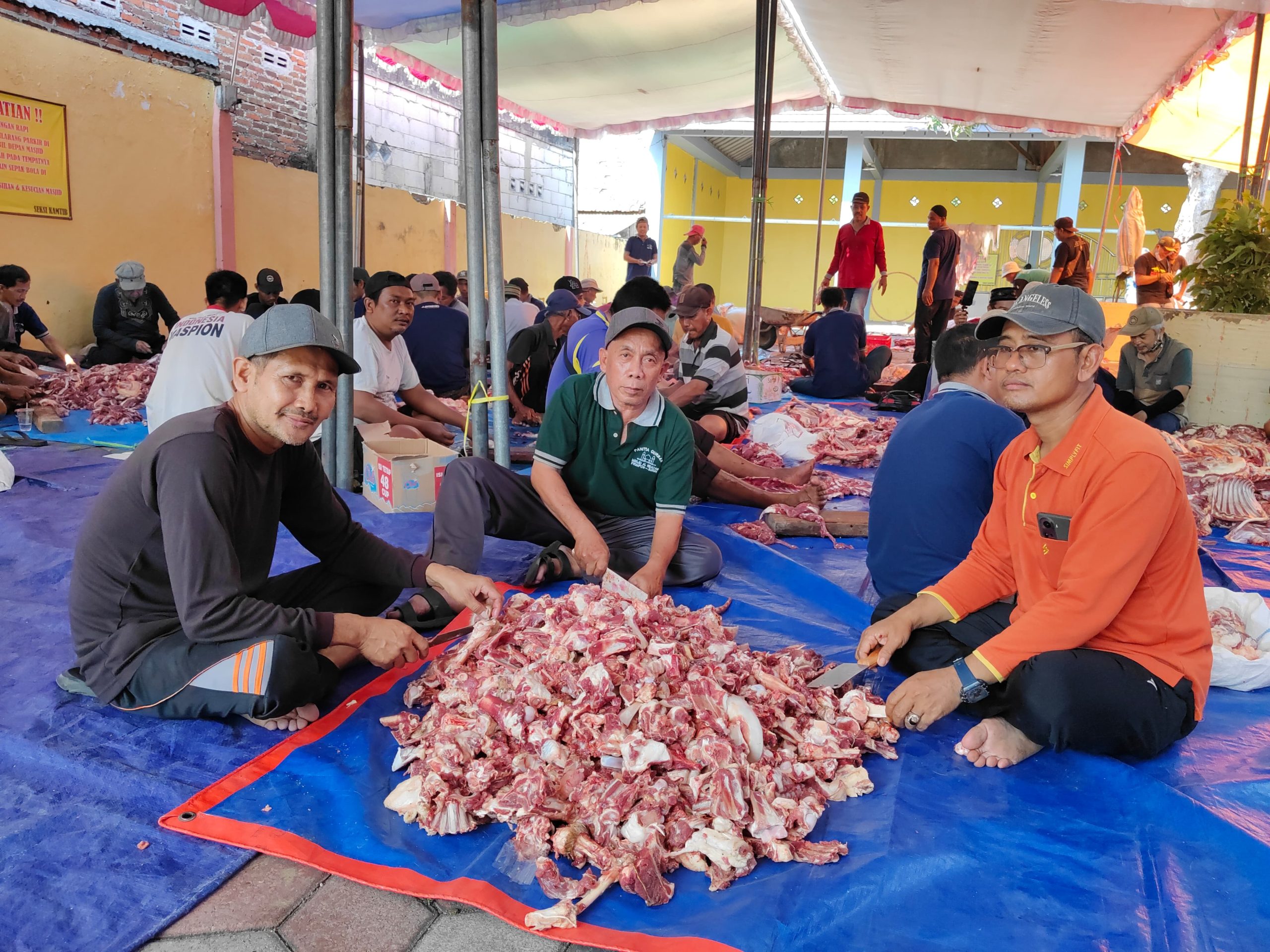 Penyembelihan hewan kurban dibantu oleh puluhan relawan, karena penyembelihan dilaksanakan Jumat (06/06/2025), dengan waktu yang relatif pendek.