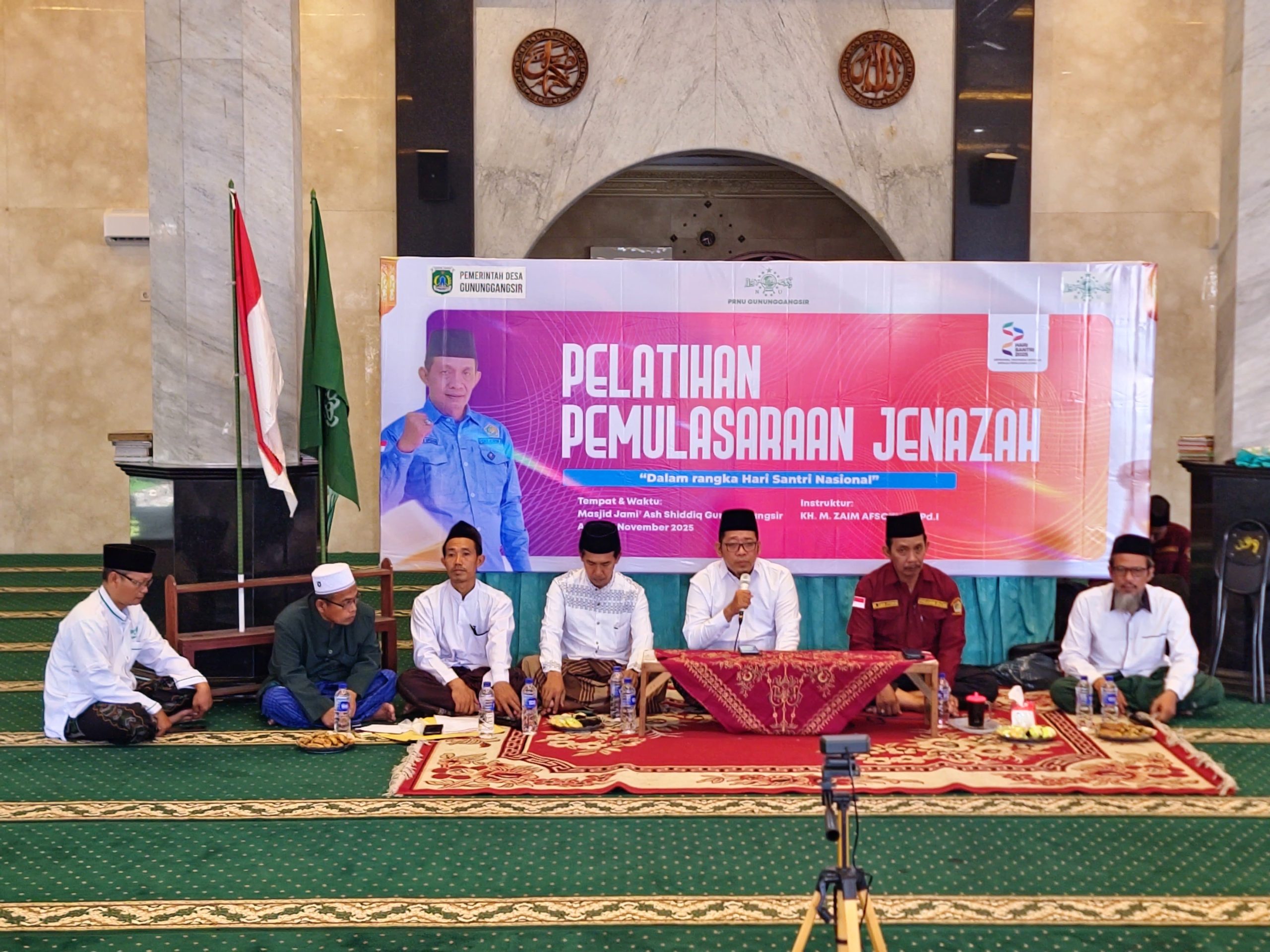 Pasuruan, jurnal9.tv -Dalam rangka memperingati Hari Santri Nasional, Pengurus Ranting Nahdlatul Ulama (PRNU) Gununggangsir menggelar pelatihan pemulasaraan jenazah di Masjid Jami’ Ash Shiddiq, Desa Gununggangsir, Kecamatan Beji, Kabupaten Pasuruan. Kegiatan tersebut bertujuan memberikan pemahaman lebih tentang cara merawat jenazah.
