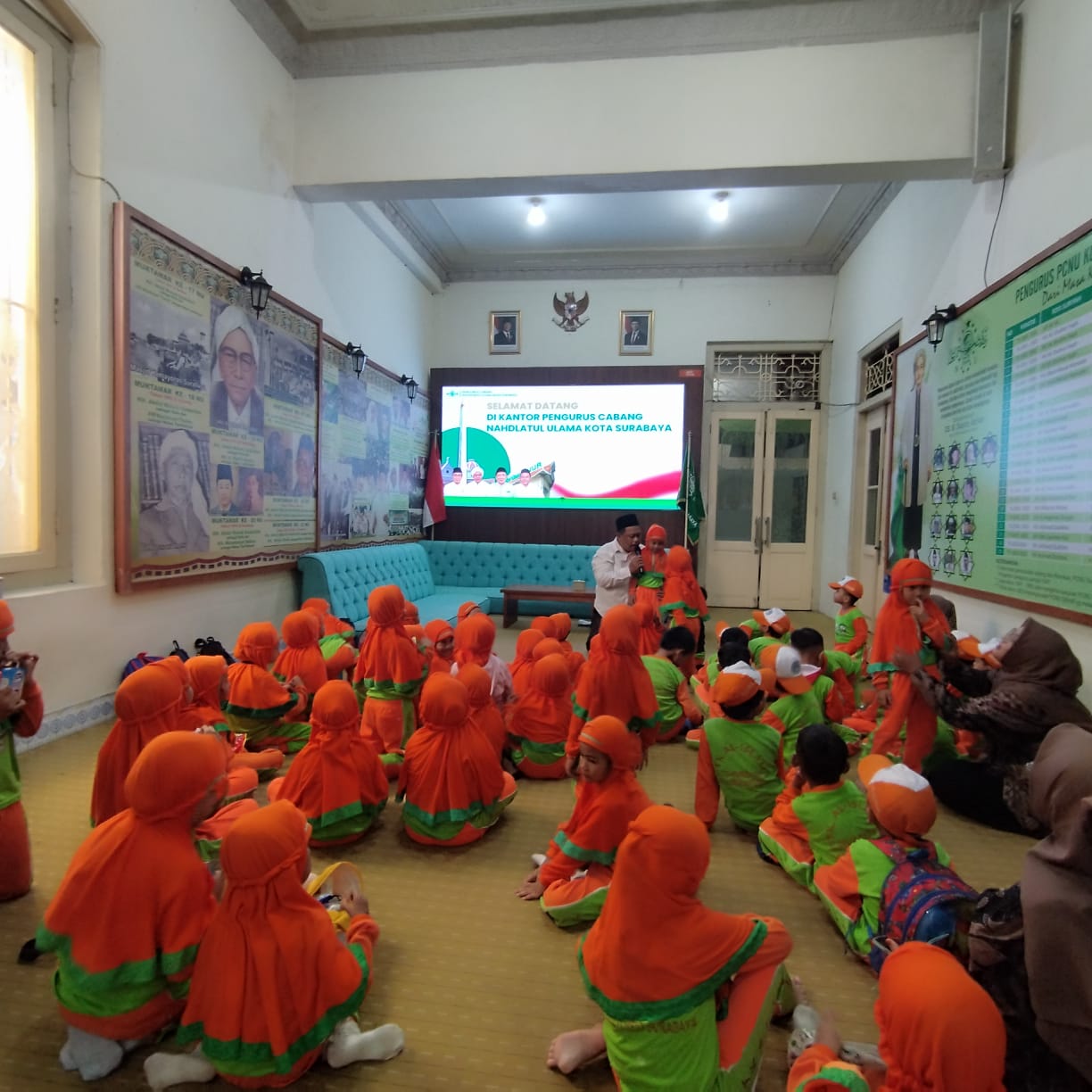 Surabaya, jurnal9.tv -TK Al Islam yang beralamatkan di Jl. Tempurejo No.41 Surabaya melaksanakan pembelajaran outing class ke Gedung Hoofdbestuur PCNU Kota Surabaya. Kegiatan ini merupakan serangkaian dari peringatan Hari Santri Nasional yang sehari sebelumnya dilakukan di sekolah dengan melaksanakan upacara bersama.