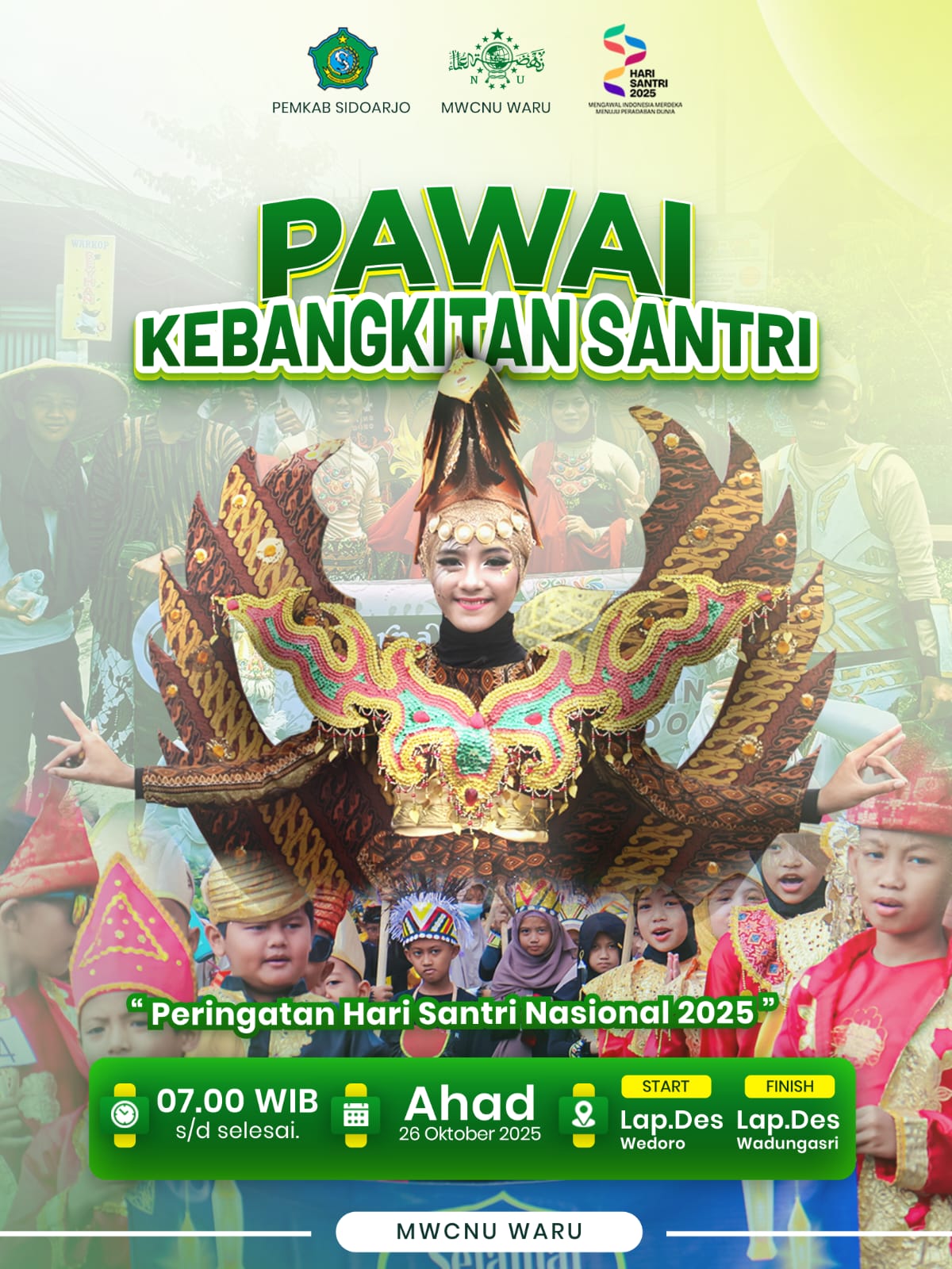 Sidoarjo, jurnal9.tv -Majelis Wakil Cabang Nahdlatul Ulama (MWCNU) kecamatan Waru Sidoarjo akan mengelar kegiatan Pawai bertema “Kebangkitan Santri”, pada Ahad, 26 Oktober 2025.
