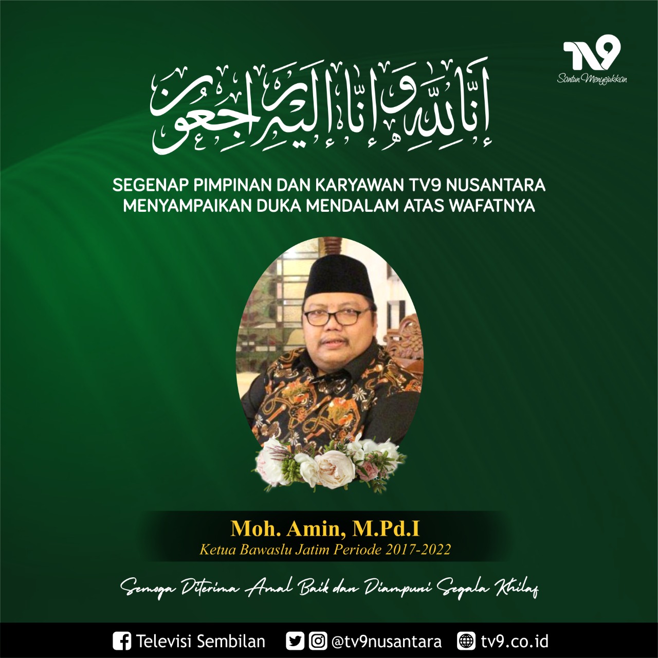 Seluruh kerabat Tv9 Nusantara mengucapkan duka mendalam atas kepergian almarhum. Semoga amal ibadahnya diterima Allah SWT. (snm)