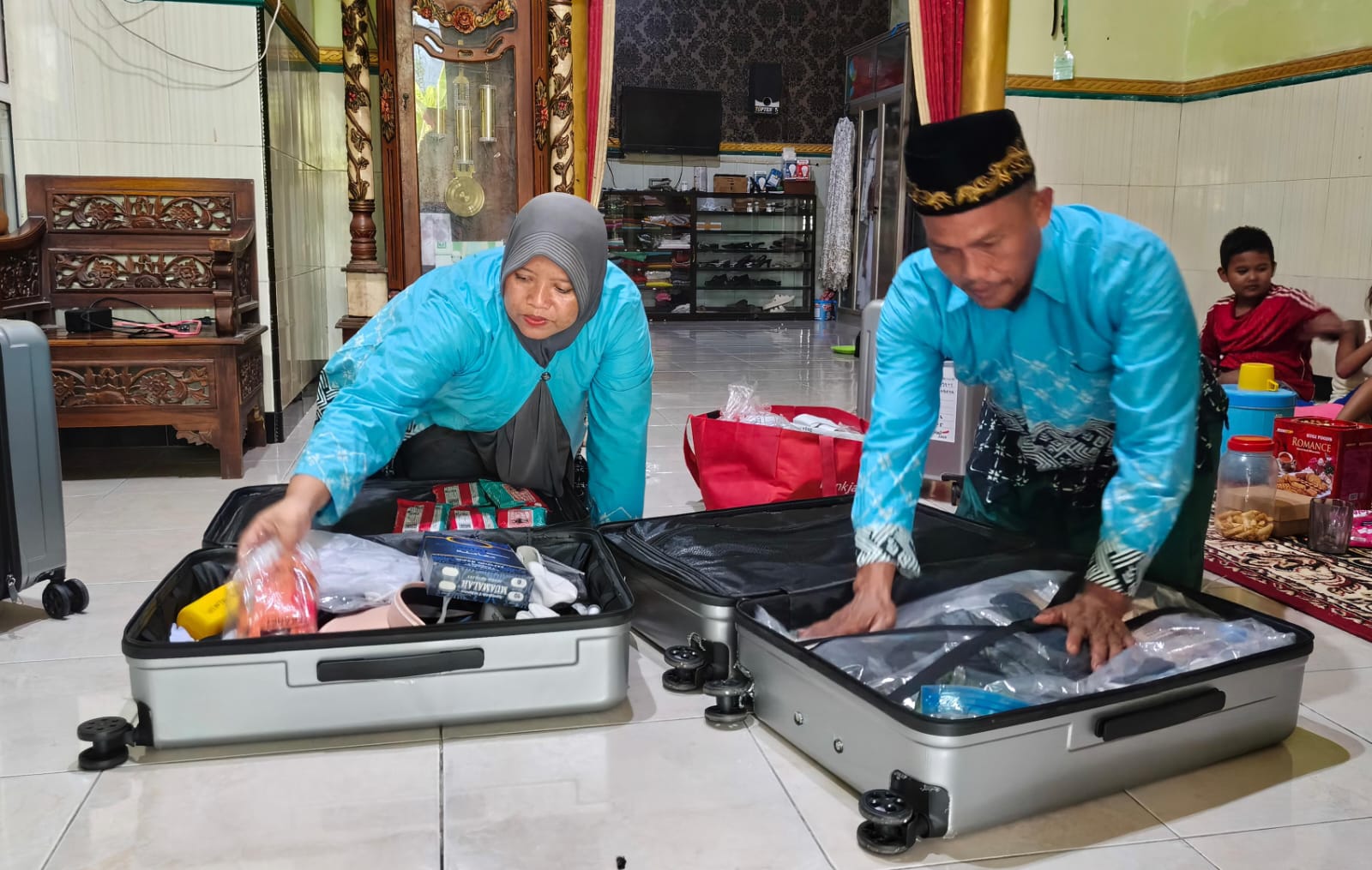 Menjelang keberangkatan, suasana haru menyelimuti kediaman mereka. Wiwik tak kuasa membendung air mata saat mengenang masa-masa sulit saat harus menabung di tengah kebutuhan hidup yang tidak sedikit.