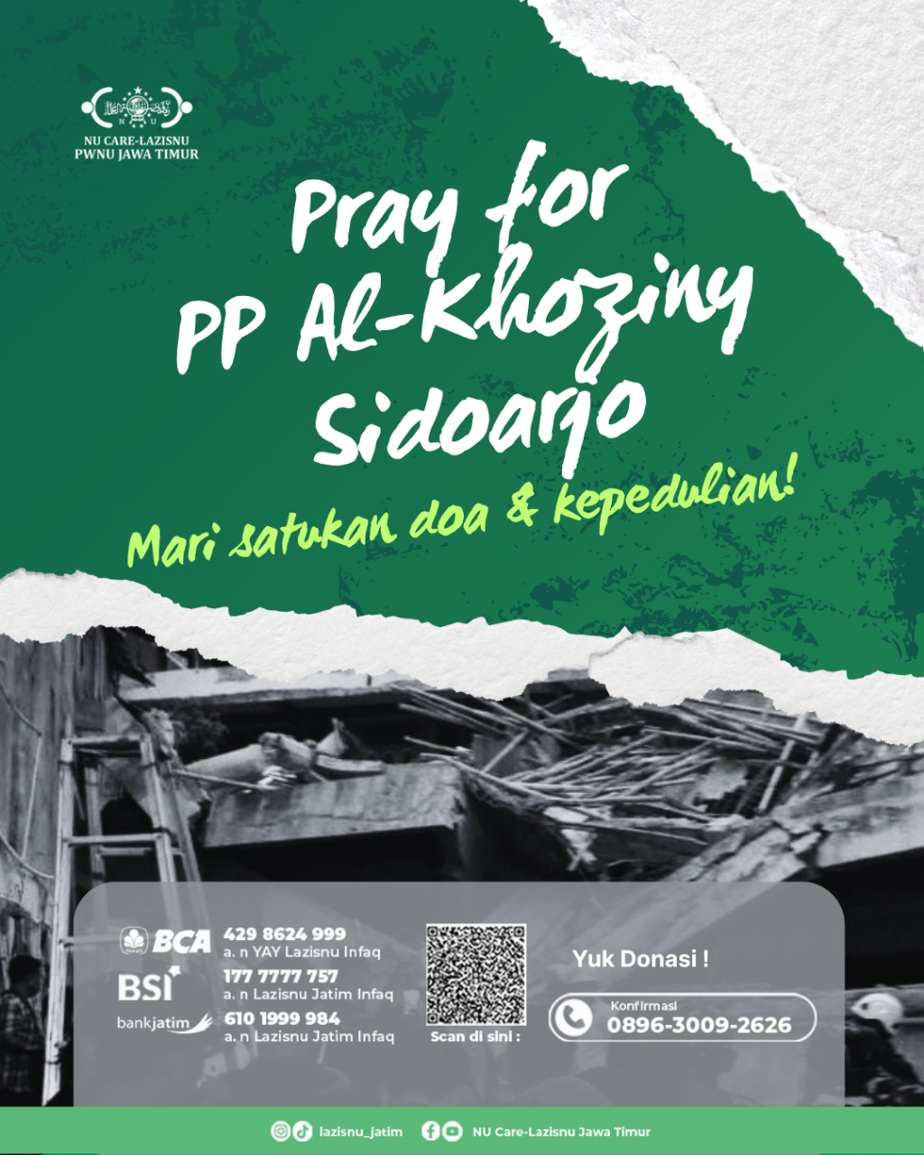 Ketua Umum PBNU, KH. Yahya Cholil Staquf telah memerintahkan LAZISNU untuk membantu dan melakukan assesement ke Pondok Al Khoziny.