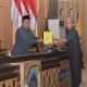 Lamongan, Jurnal9.tv – Bupati Lamongan Yuhronur Efendi menyerahkan dokumen Pendapat Bupati Atas Empat Rancangan Peraturan Daerah Inisiatif DPRD Lamongan secara langsung kepada Ketua DPRD Lamongan Abdul Ghofur, yang kemudian diikuti oleh perwakilan anggota fraksi dalam Rapat Paripurna DPRD Lamongan Hari Kedua dalam rangka Pendapat Bupati Atas Empat Rancangan Peraturan Daerah Inisiatif DPRD dan Pandangan Umum Fraksi Atas Lima Rancangan Peraturan Daerah Usulan Pemerintah Daerah, Rabu (14/9).
