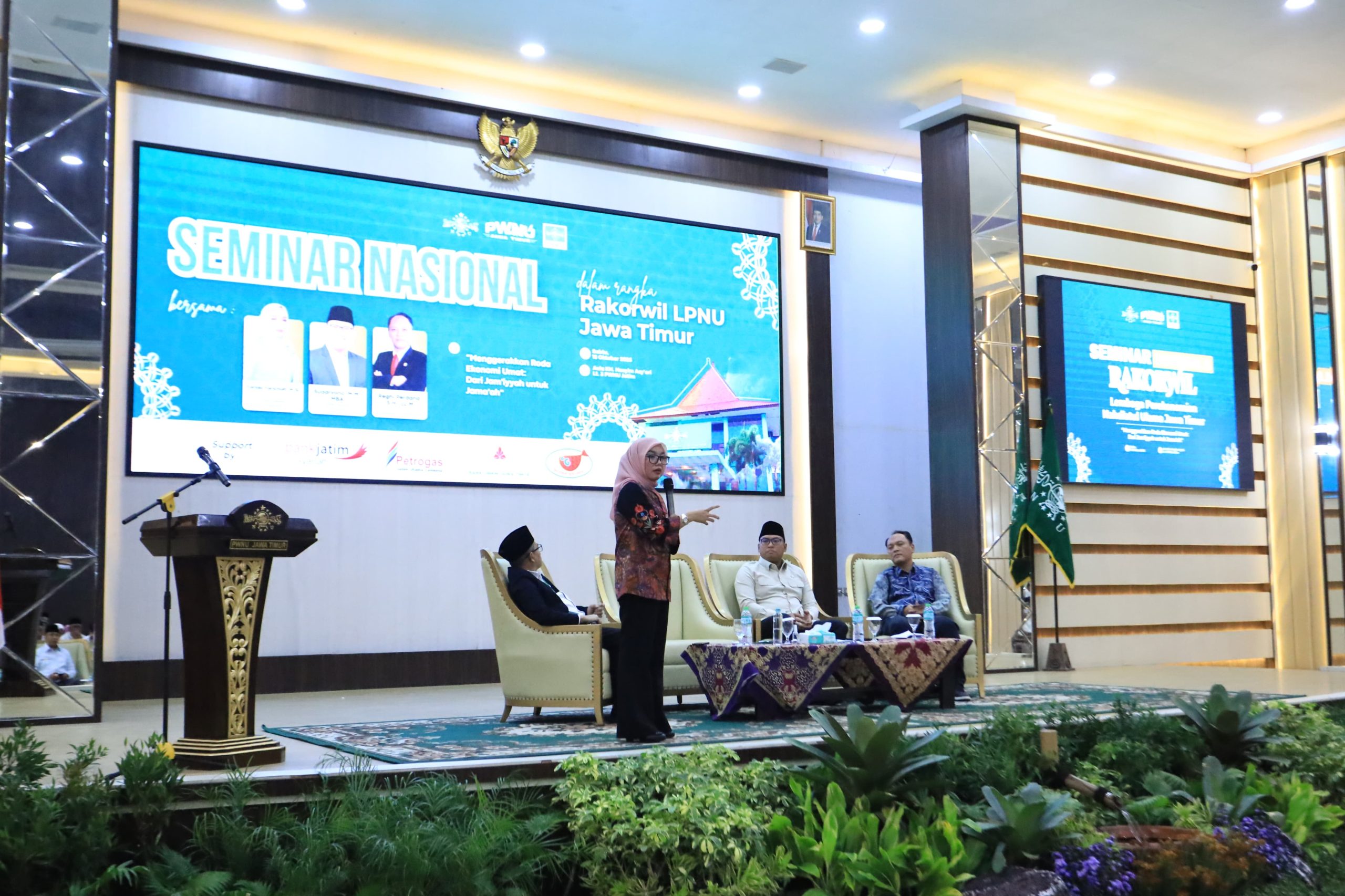 Acara yang dihadiri sekitar 100 peserta dari unsur Pimpinan Cabang LPNU se-Jawa Timur dan perwakilan mahasiswa ini menghadirkan tiga pembicara nasional, yakni Wakil Menteri Koperasi Farida Farichah, M.Si, Wakil Menteri Pertanian Sudaryono, M.M., MBA, serta Staf Ahli Menteri Bidang Hukum dan Kebijakan Publik Kementerian UMKM, Reghi Perdana, S.H., LL.M.