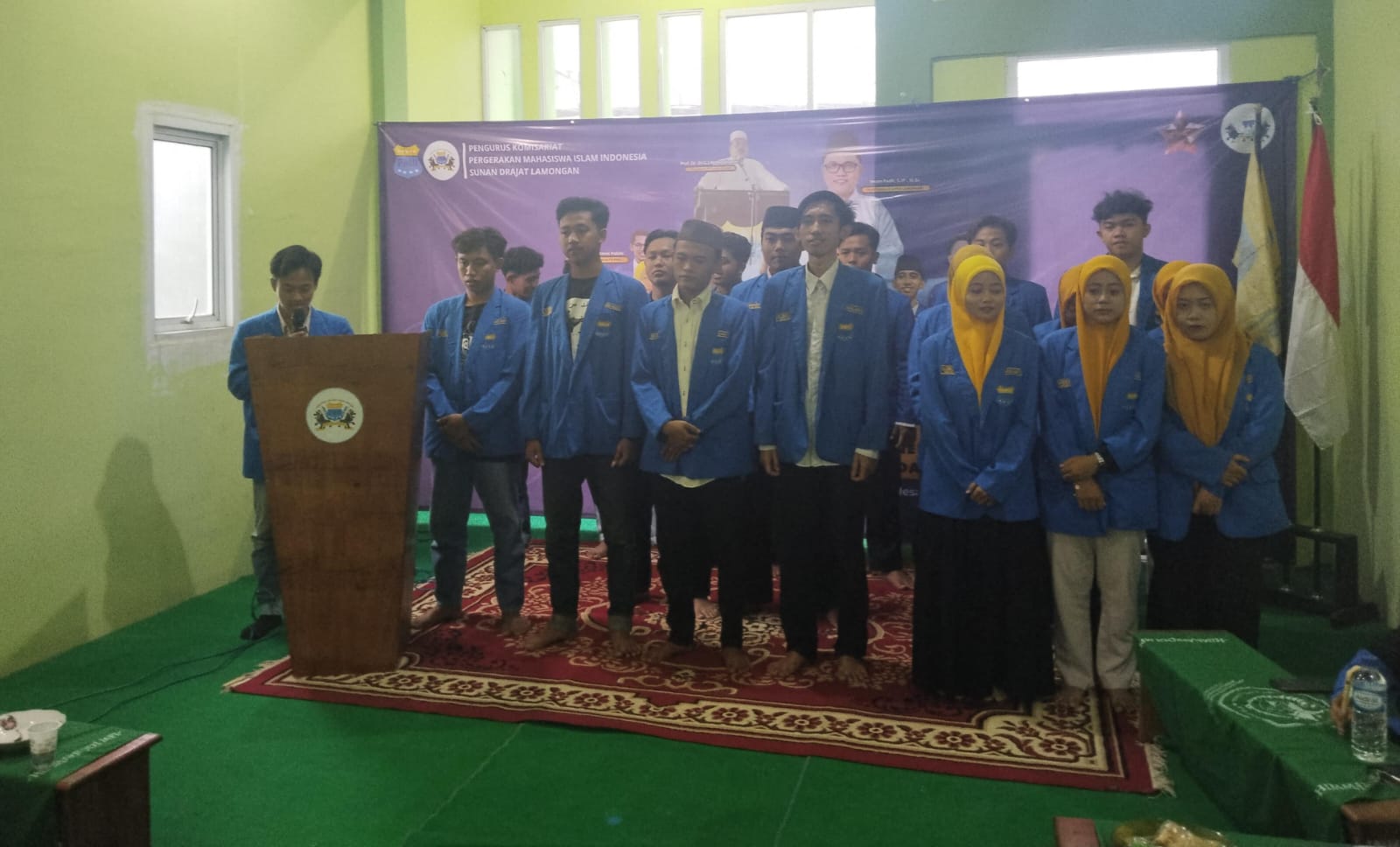 Lamongan, jurnal9.tv -Pengurus Pergerakan Mahasiswa Islam Indonesia (PMII) Pengurus Komisariat (PK) Sunan Drajat Lamongan periode 2025–2026 resmi dilantik. Prosesi yang dipimpin oleh Ketua Umum PC PMII Lamongan, Sahabat Lana, tersebut berlangsung khidmat, mengukuhkan M. Rizky P.R.S. sebagai Ketua PK dan Diltha Aike Mafaza sebagai Ketua KOPRI.
